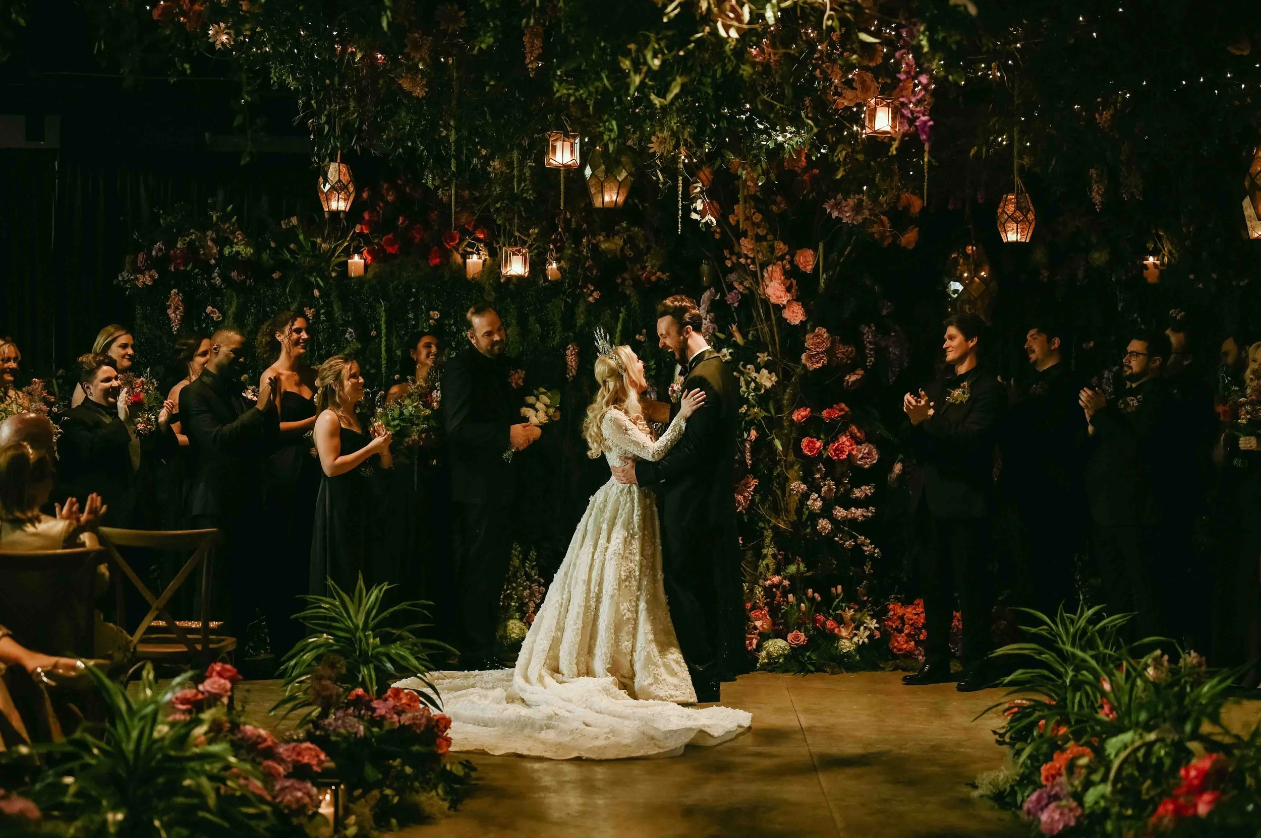 For one magical spring night at The Kent, a loft-style industrial feeling venue in downtown Memphis, was transformed into a garden out of a dream, with walls and ceilings covered in greenery and florals from the incredible team at Lynn Doyle. Whitney and Danny were wed under one of these unreal canopies of flowers and hanging lanterns, and then danced the night away starting with a choreographed first dance and ending with an afterparty at Paula Raiford’s Disco.
